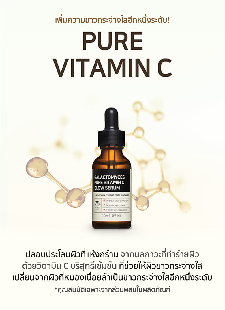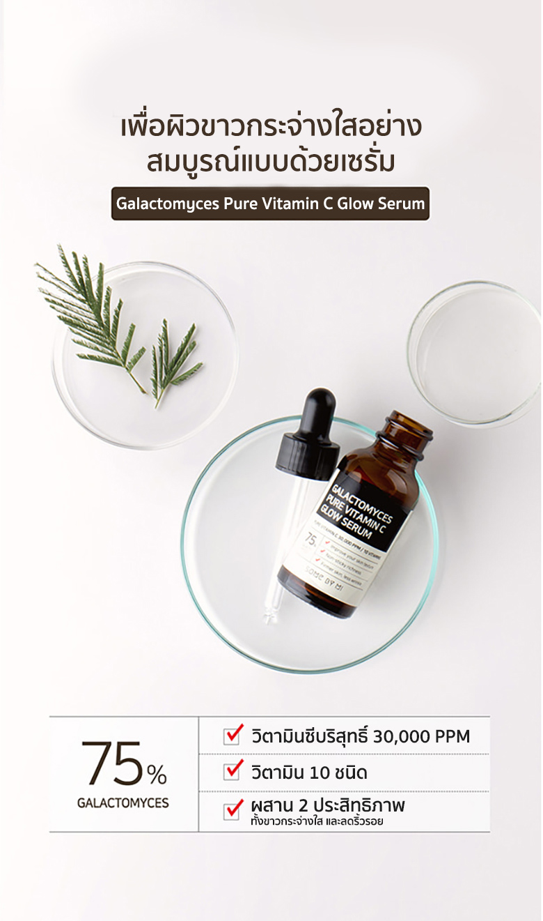 SOME BY MI GALACTOMYCES PURE VITAMIN C GLOW SERUMเซรั่มจากวิตามินซีบริสุทธิ์ช่วยลดริ้วรอย เผยผิวกระจ่างใสอย่างเป็นธรรมชาติพร้อมทั้งช่วยบำรุงผิว ล้ำลึกอย่างอ่อนโยนปริมาณสุทธิ 30 มิลลิลิตร