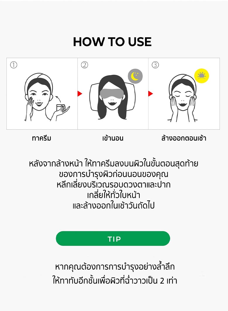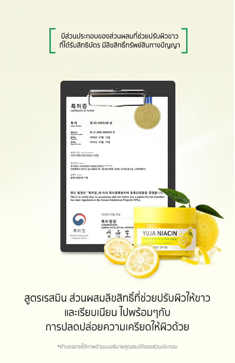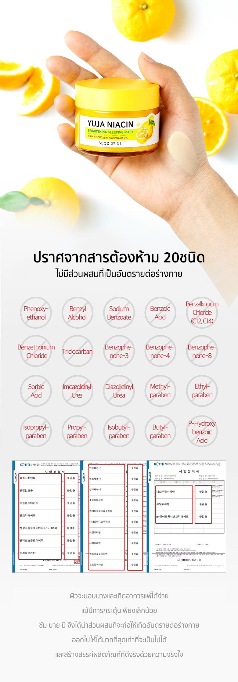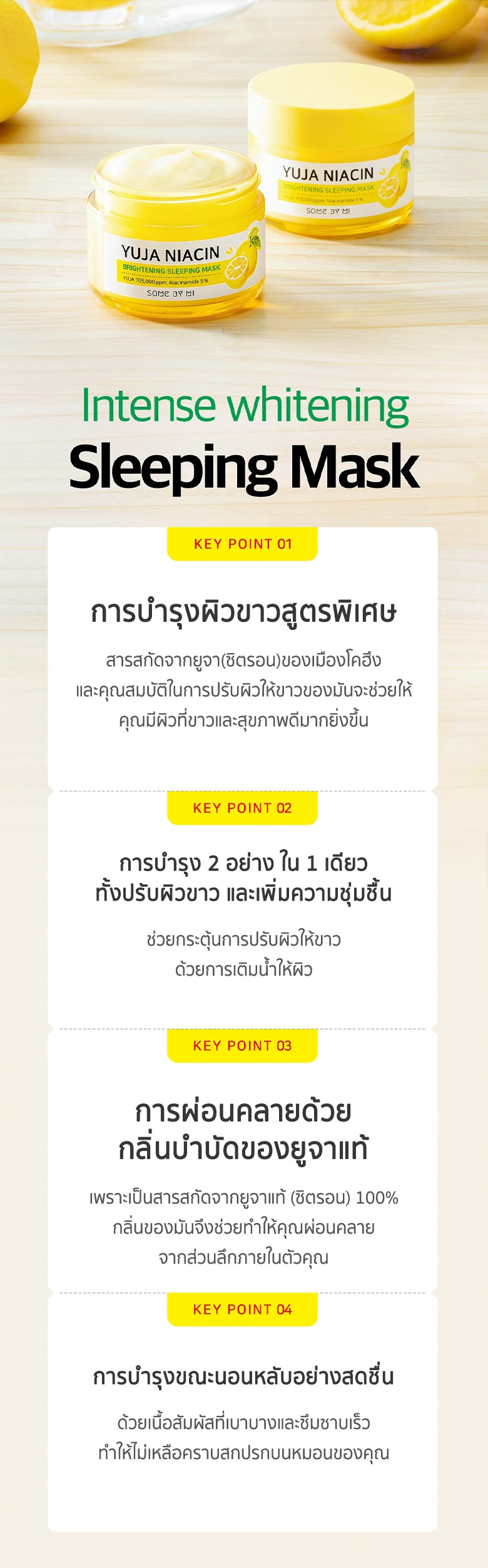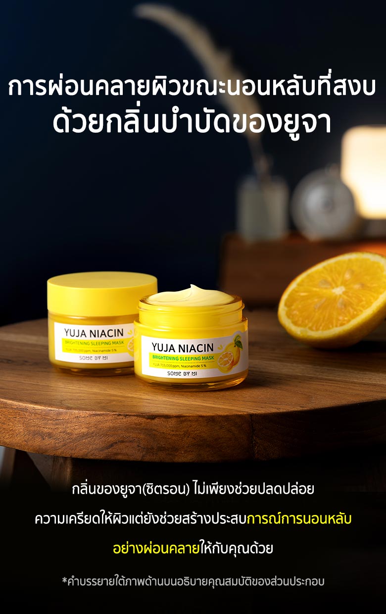 SOME BY MI YUJA NIACIN 30DAYS MIRACLE BRIGHTENING SLEEPING MASK 15Gมาส์กปรับสภาพผิวใหม่จาก ซัม บาย มี สวยใสหลังตื่นนอนด้วยส่วนผสมหลักจาก ส้มยูจา 70% ของเมืองโคฮึงช่วยปรับสภาพผิวได้แบบ 2 IN 1ทั้งปรับสภาพผิวให้ขาวกระจ่างใส และเพิ่มความชุ่มชื้นให้ผิวกลิ่นของยูจายังช่วยให้คุณผ่อนคลาย เนื้อครีมซึมซาบเร็วบางเบา สดชื่น ไม่เหนียวเหนอะหนะ ปริมาณสุทธิ 15 กรัม