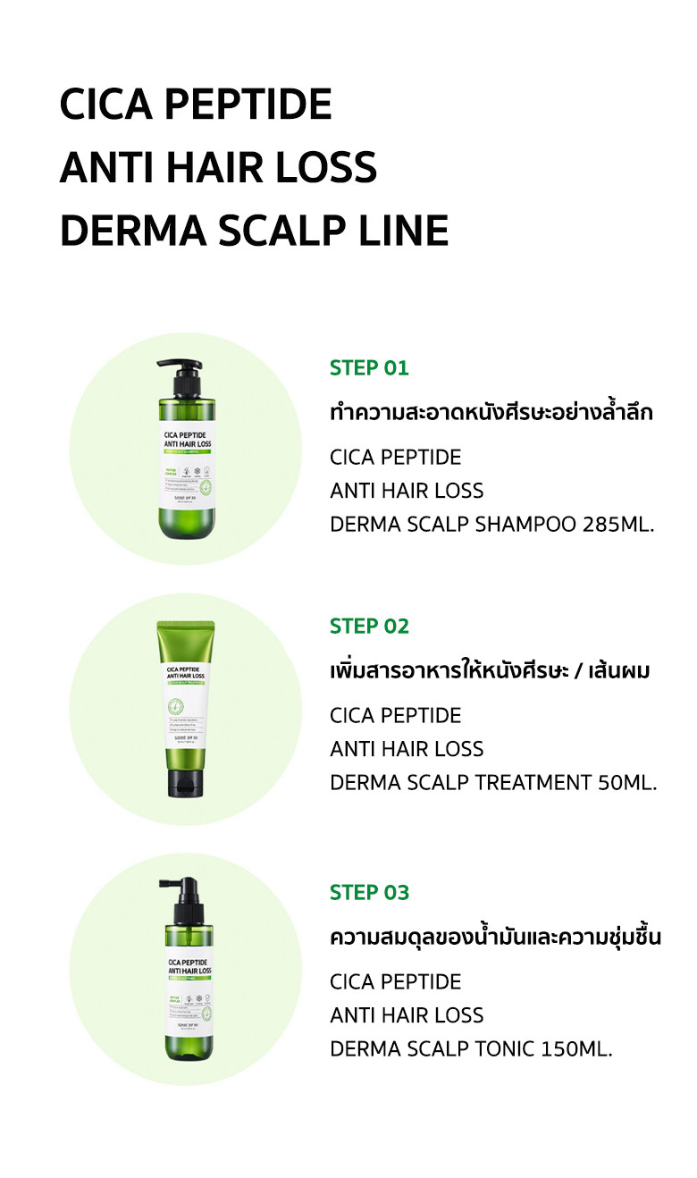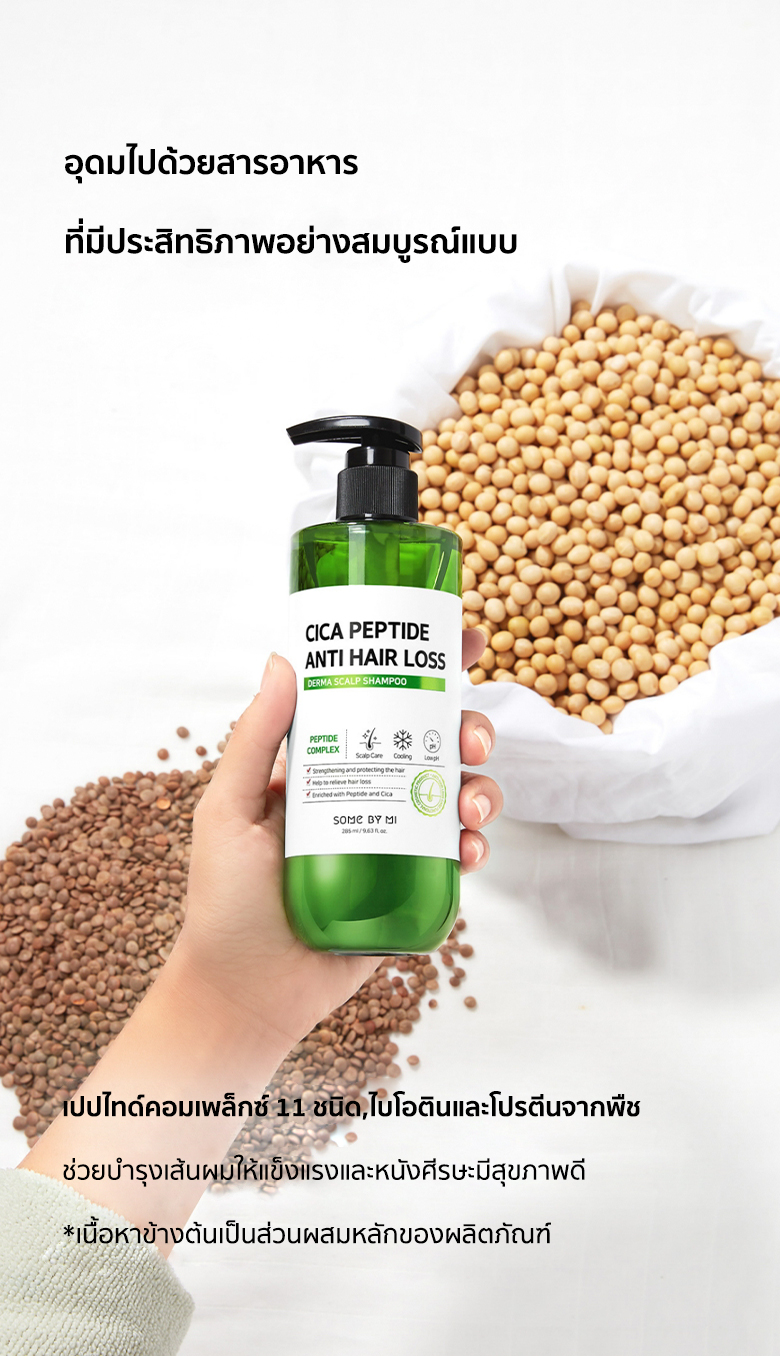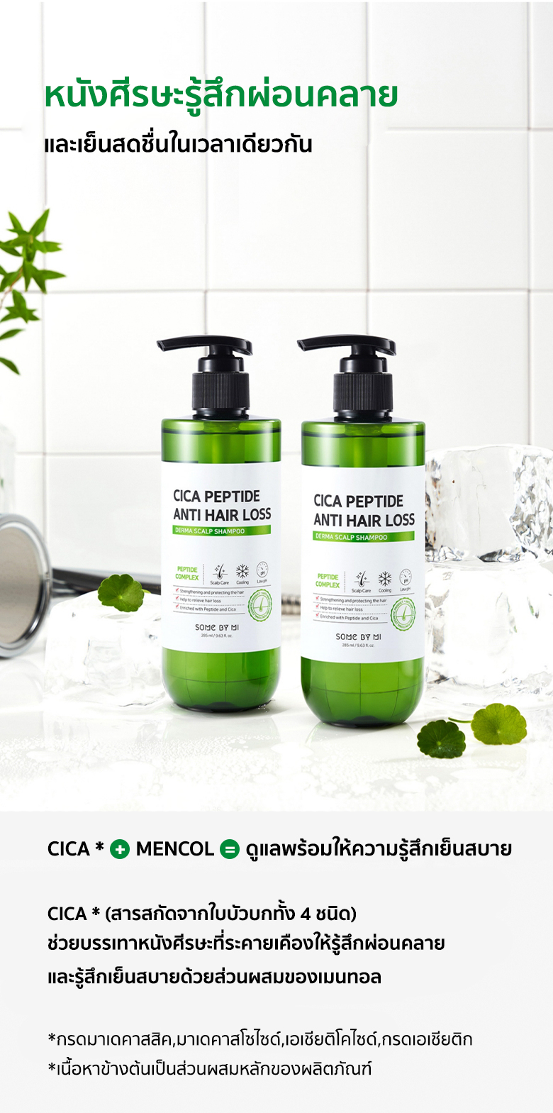 SOME BY MI CICA PEPTIDE ANTI HAIR LOSS DERMA SCALP SHAMPOOแชมพูสำหรับหนังศรีษะแพ้ง่าย ช่วยทำความสะอาดอย่างล้ำลึกช่วยให้รู้สึกผ่อนคลาย ควบคุมความมันและบรรเทาอาการผมร่วงปริมาณสุทธิ 285 มิลลิลิตร